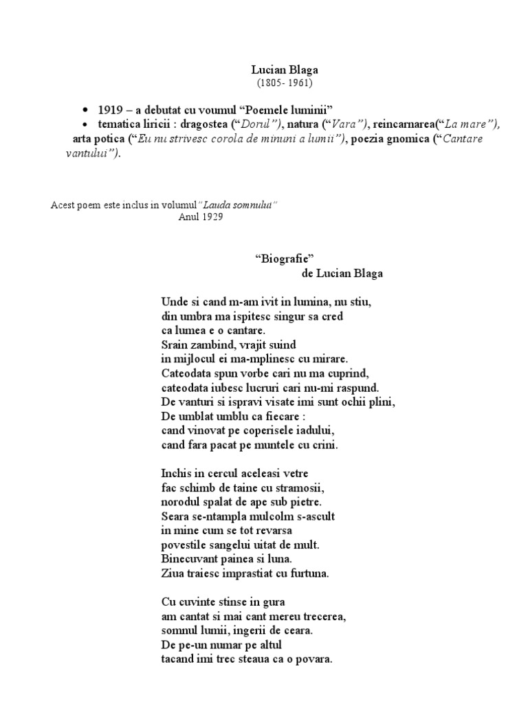 Lucian Blaga Motivation Poetry Deep Source from : https://ro.pinterest.com/pin/515099276102340921/ În poezia de dragoste, lucian blaga caută cel mai des o alinare pentru căutările lui metafizice, aducătoare de suferinţe şi lacrimi. Cumpara acum, 100% sigur prin garantia de livrare. Al semintiei mele cel din urma sunt. Afla previziunile astrologice pentru luna mai 2015 pentru zodia berbec: Prefer să te pictez zilele cu vise, iar.