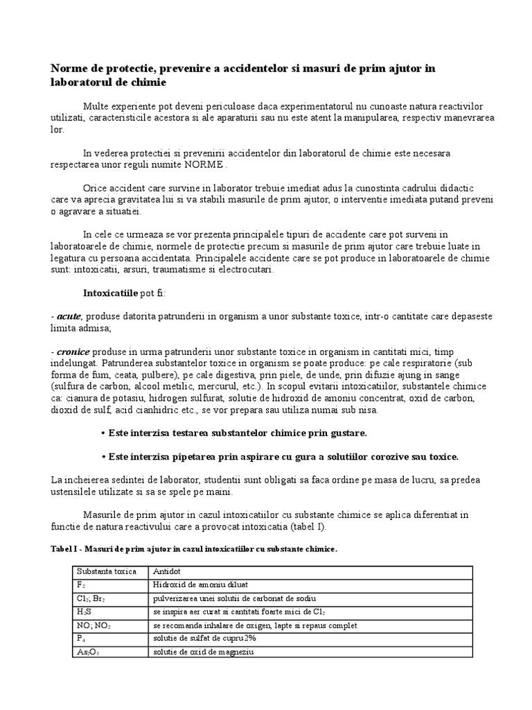 Specificul lucrarilor practice din laboratoarele de chimie, determina posibilitati diferite de accidentare, de natura chimica, termică 818h76i ;, electrica, mecanica si de aceea se impune cunoasterea si respectarea regulilor de protectia muncii. Evident, era un motiv de hai sa din acel moment, protectia muncii a incetat sa mai fie o formalitate.